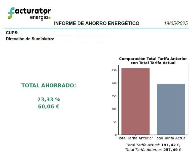 - Un informe de ahorro donde te indicamos el ahorro conseguido